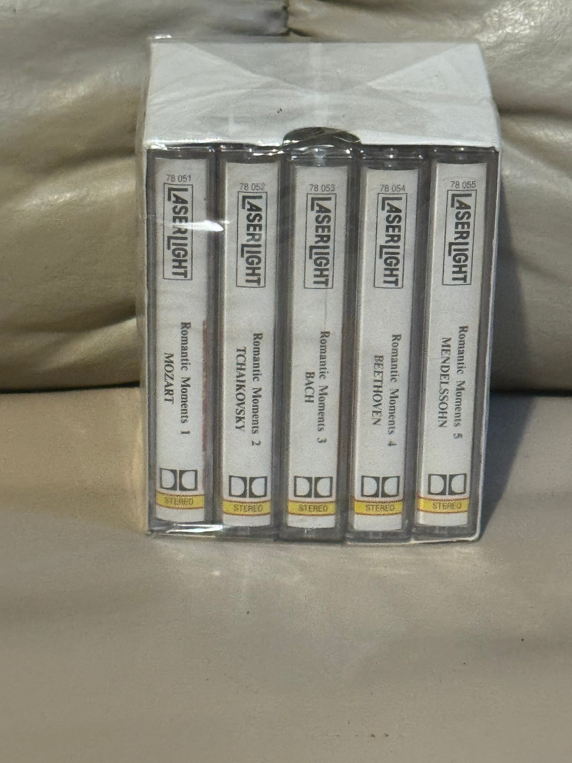 Romantic Moments classical laserlight beetoven mozart bach 5 tapes factory sealed Each tape is sealed, the outer box is also sealed. See photos for condition.(7477)