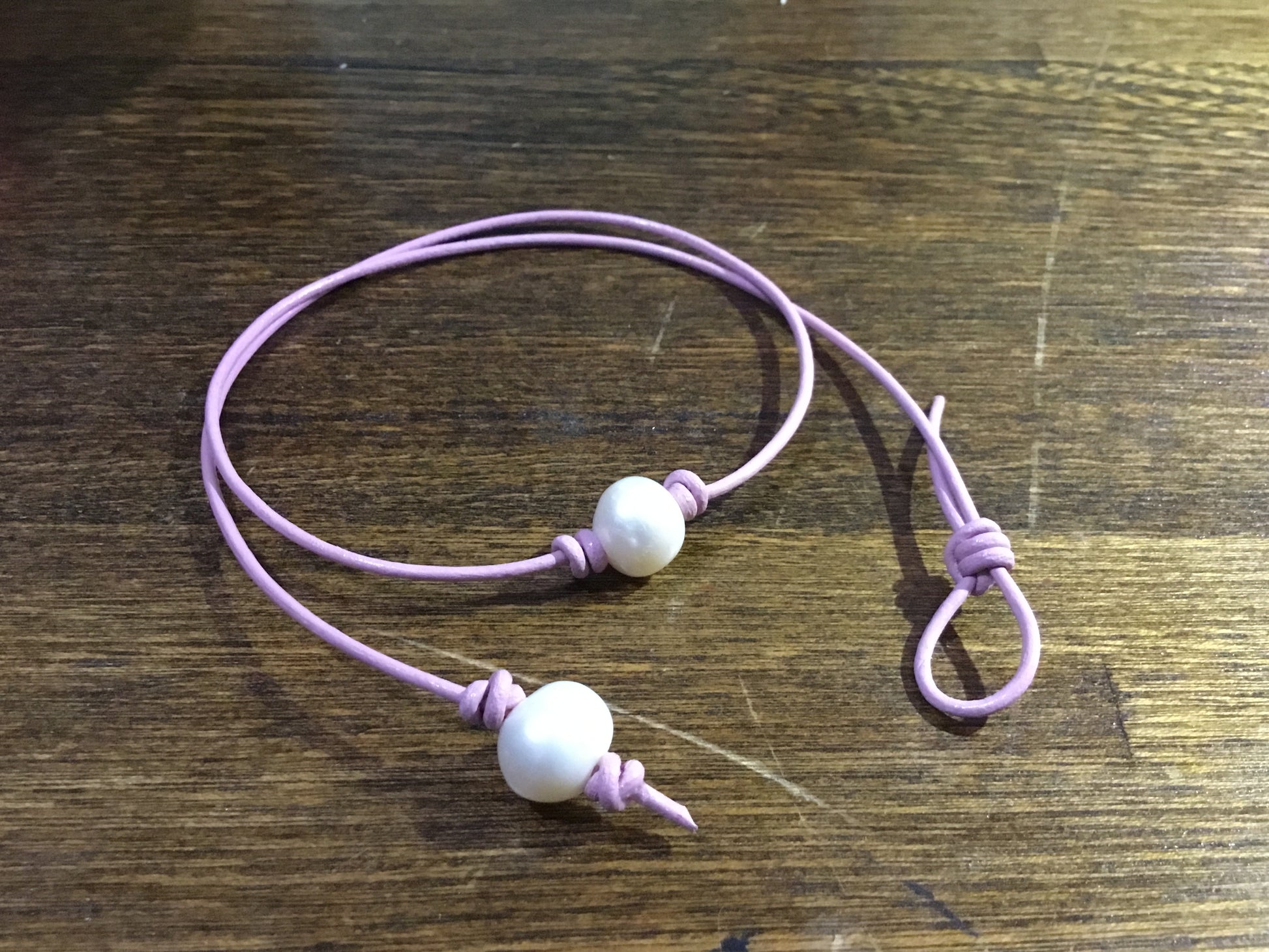 Single White Pearl Necklace, #13 Soft Pink Leather Cord