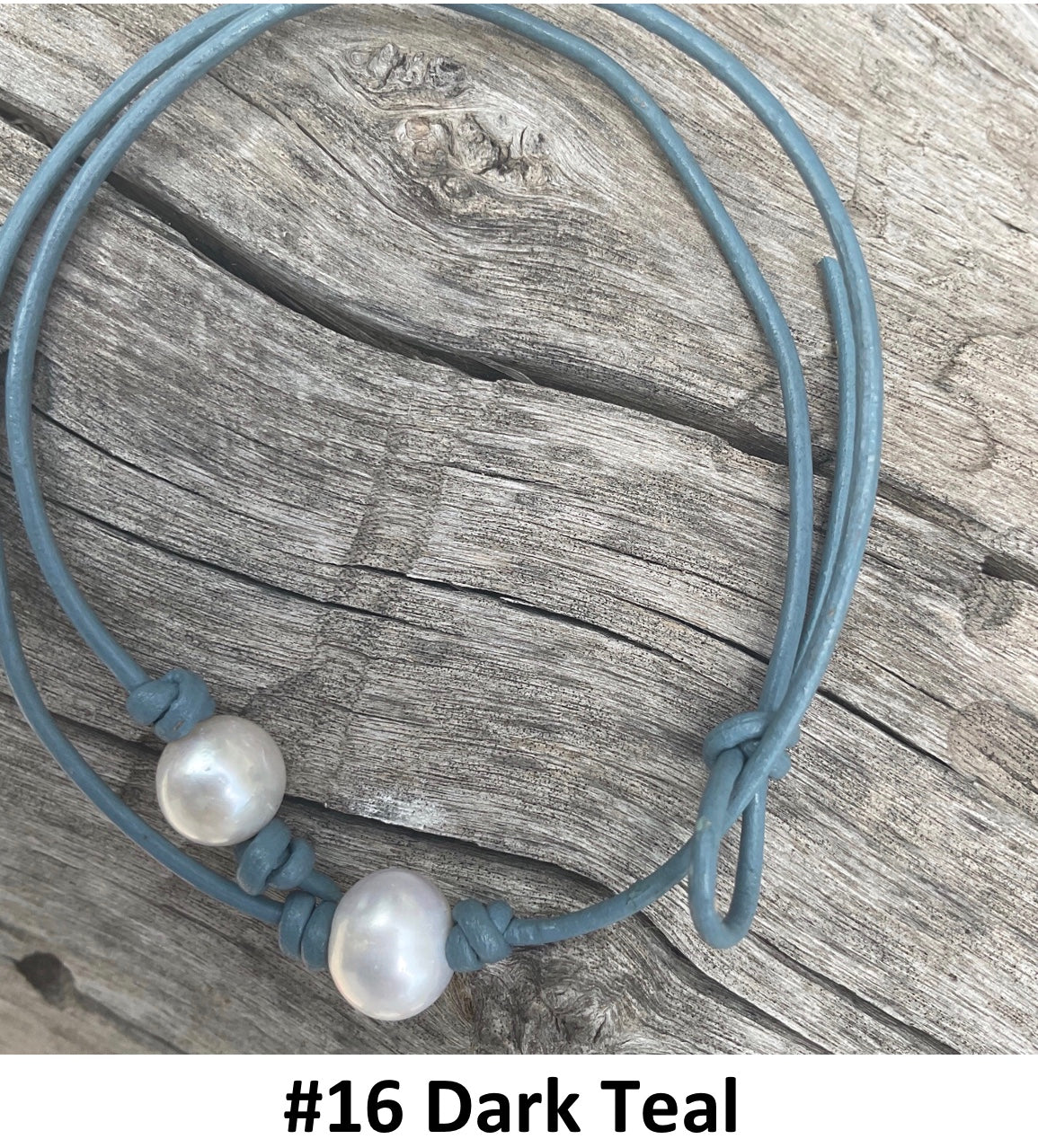 Single White Pearl Necklace, #16 Dark Teal Leather Cord