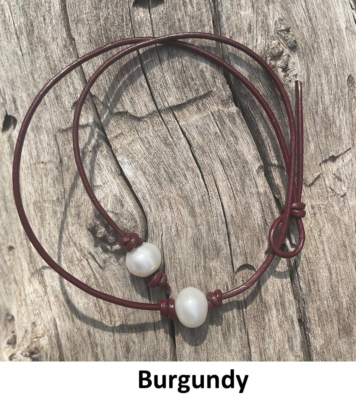 Single White Pearl Necklace, #20 Burgundy Leather Cord