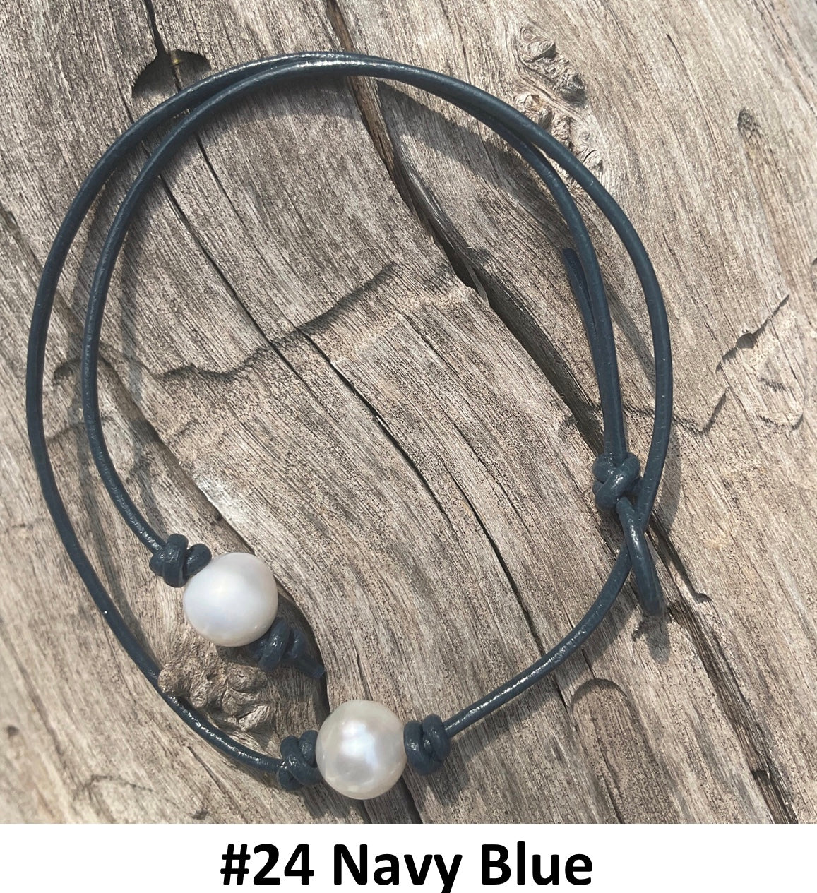 Single White Pearl Necklace, #24 Navy Blue Leather Cord