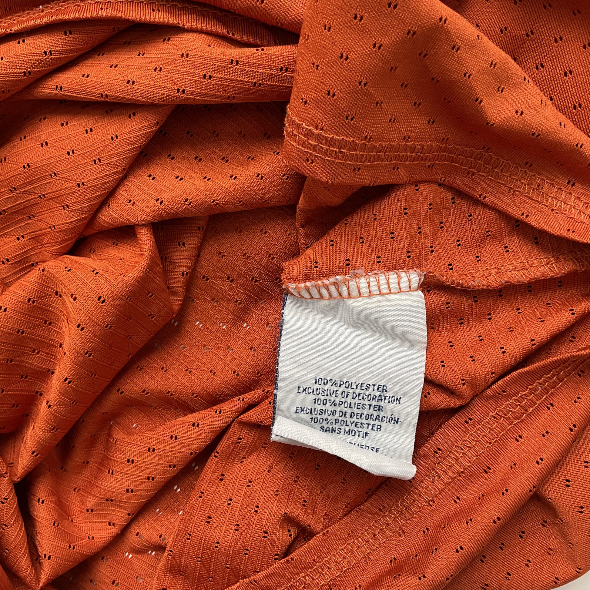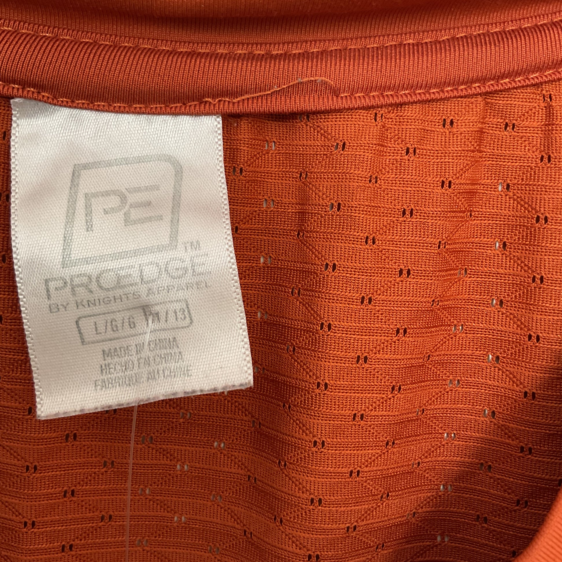 College Texas Longhorns Fan Women’s Shirt Size L. Classic orange pro edge college fan shirt. Please note the uneven stitch in the neck. Measurements are neck 9 in by 8 in, shoulder 5 in, pit 8 in8 in, chest 21 in, length 26 in. (1488).